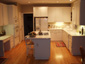 The kitchen includes an island with a gas cook top and downdraft, double sink,